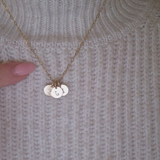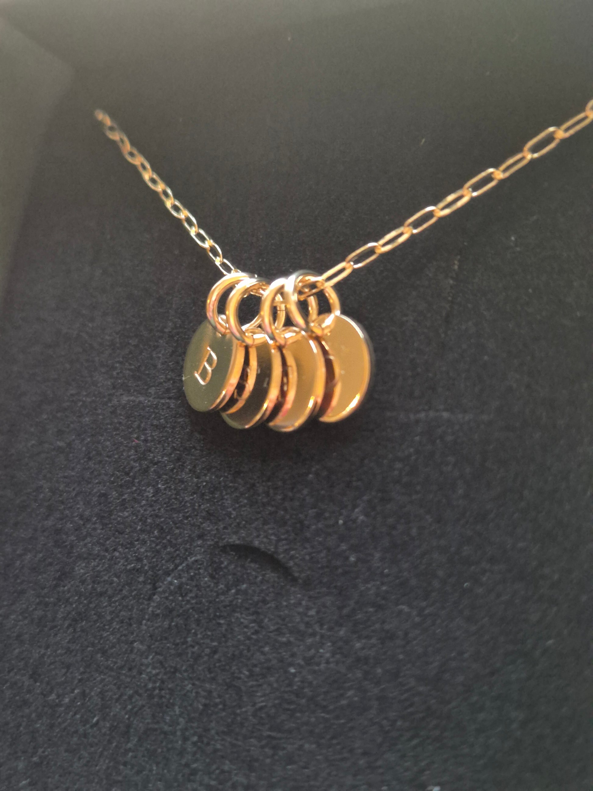 Hand-stamped/engraved initial necklace, in gold filled. Made especially for you. Each necklace will be unique to you. Choose up to six initials/numbers and create a meaningful piece of jewellery you will cherish forever.